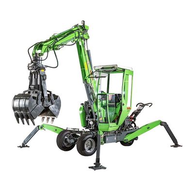 The APZ 131 is a portable excavator whose all-wheel drive and continuously controllable speed of 0-6 km / h forward and reverse makes it remarkably mobile. The APZ 131 featuring a spacious cabin, give the operator an ergonomic, stress-free and comfortable working atmosphere. A heated cabin, even in inclement weather makes for a pleasant working environment. Likewise, the cabin offers the operator a complete visibility around and into each workspace. The body of the APZ 131 is designed so that careful work in confined spaces is possible. For example, the superstructure does not pivot beyond track of the vehicle. Individually adjustable folding outriggers ensure a safe grounding in any working position. Leveling allows a comfortable driving and working on slopes. A specifically developed tandem trailer for this excavator, with adjustable tow bar and a special ramp, ensures fast laoding and easy transport.