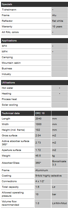 Model DRC 10 -Solar Collectors
