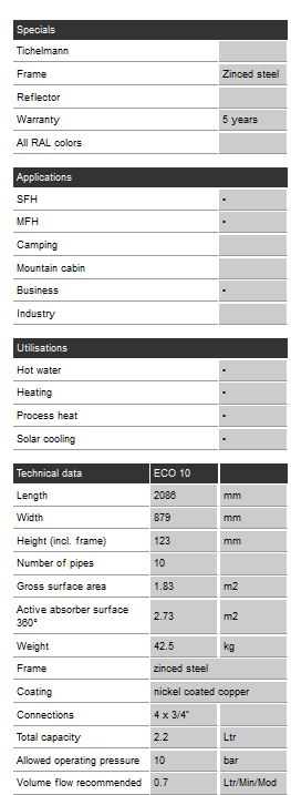 - Model ECO 10 - Solar Collectors