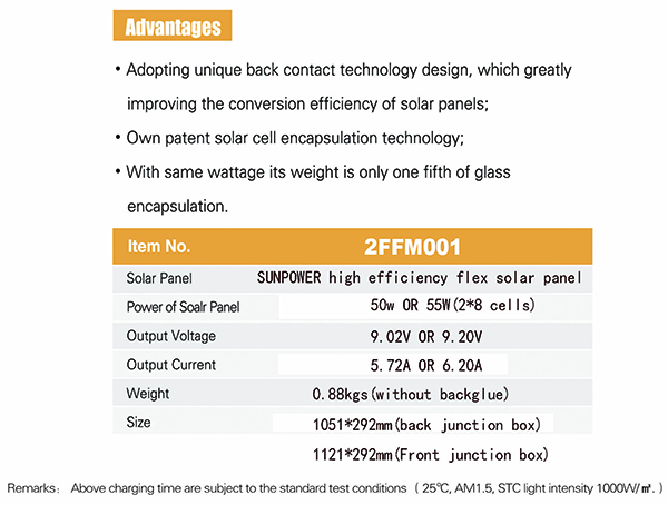 Model ETFE - 2FFM001 -50W or 55W Semi Flexible Solar Panel