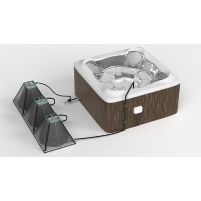 Our hot tub solution is easy to install. Just connect the hose to the drain of our hot tub to feed our solar collectors. Hot water is simply returned to your hot tub with a hose.