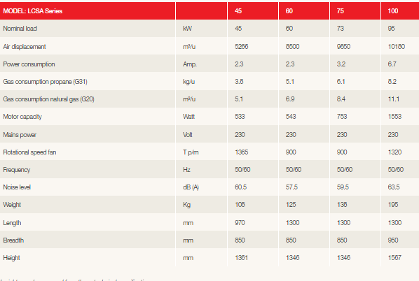 Model LCSA series -Indirect-Fired Gas Heaters with Horizontal Air Flow