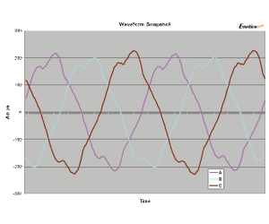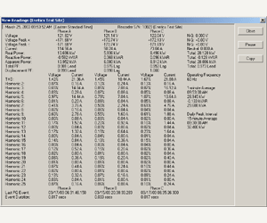 Real time data is available from the RS-232 port to aid in setup verification. Voltage, current, power, harmonic readings and waveforms are updated every 7 seconds.