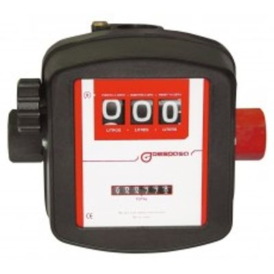 MG80 Fuel / Diesel Flow Meter . 10~90 L/min, Accuracy: +/- 1% . 1` BSP connections . 3 digit resetabble / 6 digit non resetabble total . Flexible Installation options due to port arrangement . Polyamide Resin construction (fireproof) . Max 3.5 Bar working pressure, 60ÂșC Max Temp { Not suitable for Petrol }.