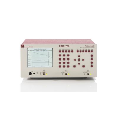 PSM1700 PsimetriQ is a comprehensive DFT and true RMS analysis instrument for R&D and production test applications. Specifically aimed at a range gain/phase analysis applications, amongst which include switched mode power supply feedback loop stability analysis and general frequency response analysis of filters. It has a clear, bright graphics display showing real time values or graphs or tables. It can be operated completely by remote control over RS232 or LAN as an option. When combined with the IAI (Impedance Analysis Interface) the PSM become a high accuracy 1MHz Impedance Analyzer/ LCR meter. It is designed to give optimum performance, speed of measurement and convenience, providing sophisticated measurement capability in a cost effective and easy to use bench top instrument.