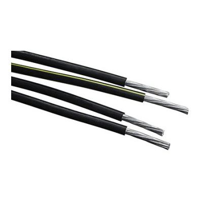 Conductors are stranded, compressed 1350-H16/H26 aluminum insulated with vulcanized interlinked polyethylene. Neutrals are triple yellow extruded stripe. Neutrals have sequential footage markers. Conductors are durably surface printed for identification. Three phase conductors and one neutral conductor are cabled together to produce the quadruplex cabled together to produce the quadruplex cable configuration.