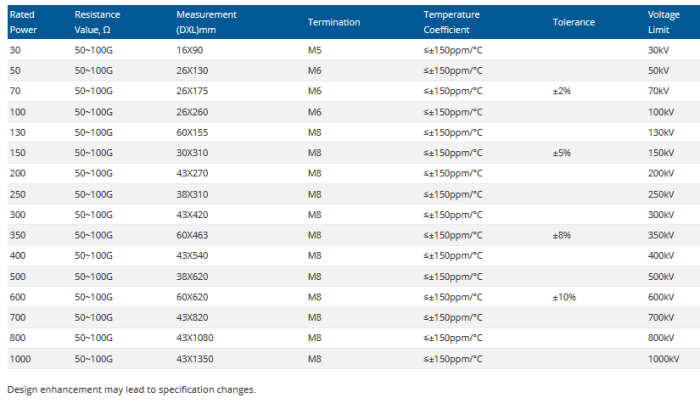 RES100 high voltage resistors are designed for the usage in voltage dividers, test equipment, medical equipment, measuring equipment and test load.