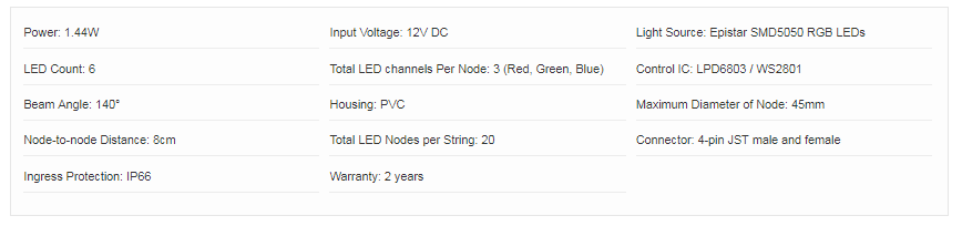 Control IC:LPD6803 / WS2801,LED channels:3 (Red, Green, Blue),Origin:China,Last Updated:2018-04-15 11:12,Views:192.