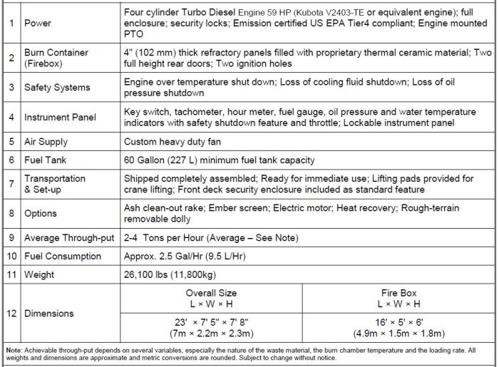 Shipped from the factory completely assembled ready for immediate use and does not require disassembly for relocation. The firebox is also used for disaster recovery and Homeland Security contingencies and for certain MSW disposal applications. Electrically powered version available for permanent (stationary) installations.