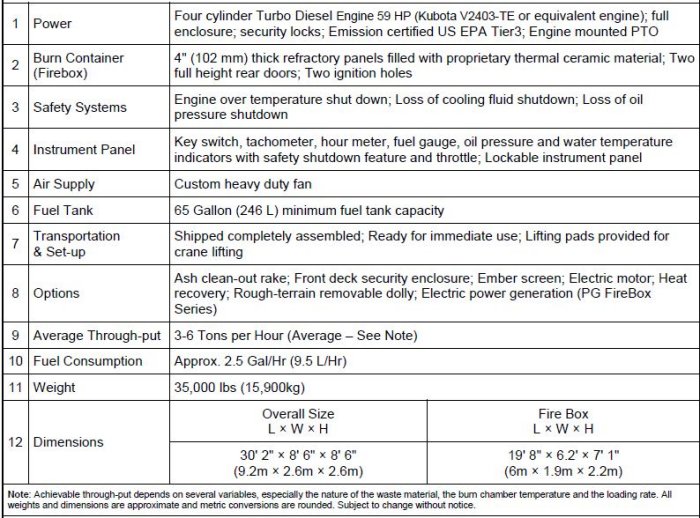 Shipped from the factory completely assembled ready for immediate use and does not require disassembly for relocation. The firebox is also used for disaster recovery and Homeland Security contingencies and for certain MSW disposal applications. Electrically powered version available for permanent (stationary) installations.