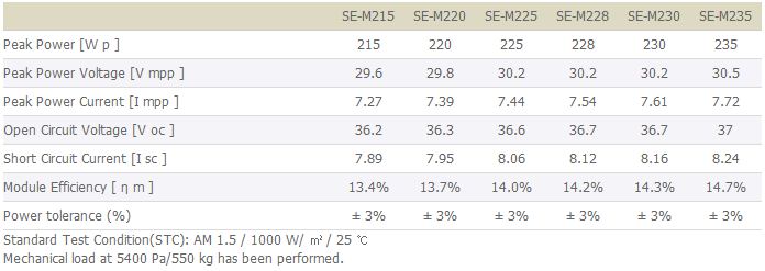 The SE6M60 Series, Polycrystalline solar modules, represent one of the best products in the PV industry. These products, made of environmentally sustained material, are light and easy to install.