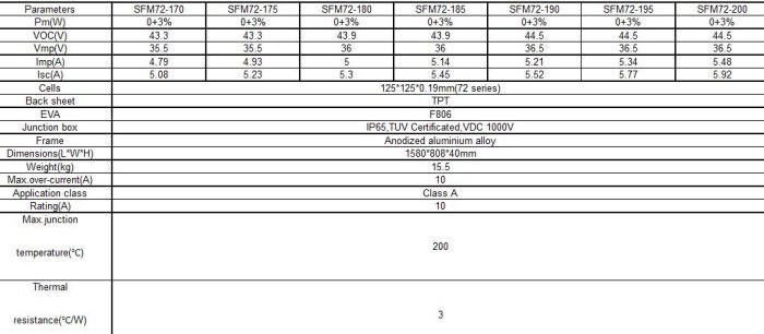 - 5 years limited warranty,10 years 90%,25 years 80%power warranty Condition of Operation