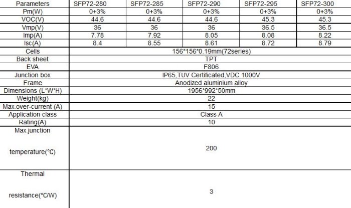 Model SFP72 -Polycrystalline Solar Module