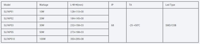 LED Power Consumption: 10W-100W. Operating Voltage: AC110-130V OR AC220-240V 50/60HZ. IC Linear driver; AC85-265V 50 / 60HZ, AC driver. LED Chip: San an/Epistar/Bridgelux/other brand chips. LED Driver: IC Linear driver; AC driver. Power Factor: >0.95. LED Luminous Efficiency: 90-130LM/W. Lamp Efficiency: >0.9. Material: Die-casting Aluminium body. IP Rating: IP68. Warranty: 2-3years.
