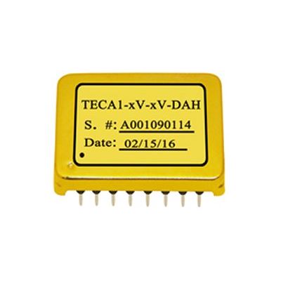 The TECA1-xV-xV-DAH is an electronic module designed for driving TECs (Thermo-Electric Coolers) with high stability in regulating the object temperature, high energy efficiency, zero EMI, and small package. This module provides interface ports for users to set the desired object temperature, i.e. set-point temperature; the maximum output voltage across TEC; and the compensation network. The compensation network compensates the high order thermal load and thus stabilizes the temperature control loop. Voltage difference between TEMP and TEMPSP is −0.02mV ~ 0.5mV, ten times lower than that of TECA1-xV-xV-D,4~5mV.