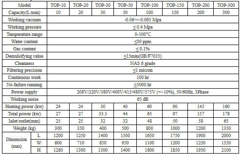 - Model TOP - Turbine Oil Purifier
