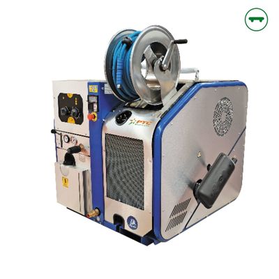 High quality painted steel frame with forklift pockets, Stainless steel covers, Kohler KDW 1003 diesel engines liquid cooling with electric starter, RW/TW Premium Comet pumps with gearbox, Pressure gauge, manual pressure regulator, safety valve, Automatic high pressure hose reel with max 20 m 3/8”, 80/100 kW diesel boiler with electronic temperature control system, Anti-scale pump device, 300/500 l tank kit (on request)