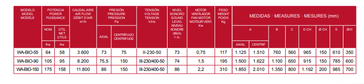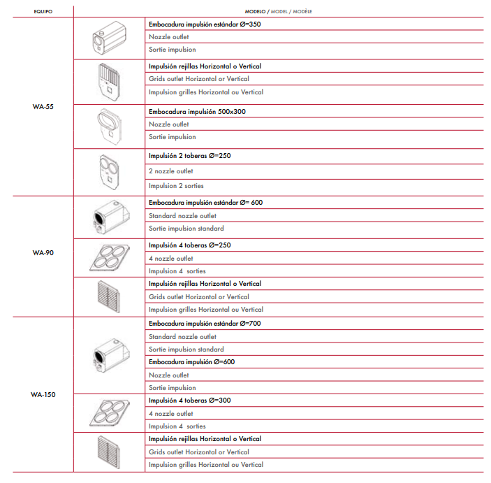 Ventilador centrífugo-Centrifugal fan / Ventilateur centrifuge, Kit portátil (ruedas + tiradores)- Portable kit (wheels + handles) / Kit portable (roue + poignee),Kit soporte colgar (cáncamos para colgar)- Hangable kit (with eared screws to be hung) / Kit palier pendant (cheville à oeuil),Visera quemador-Burner cover / Visière brûleur.