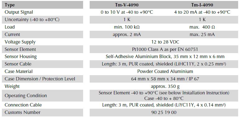 IMT - Model Tm-V-4090 and Tm-I-4090 -Module Temperature Sensor with analog Output