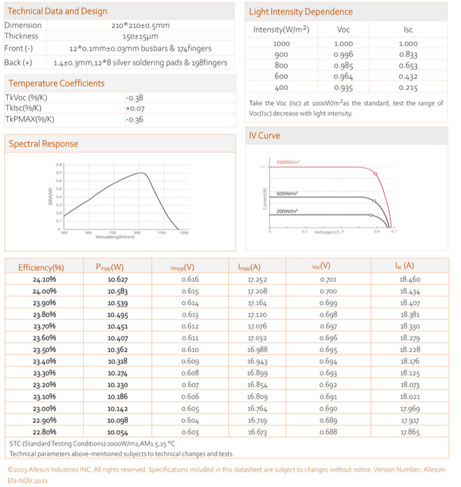 Allesun - Model 12BB 210 -Mono Bifacial Solar Cell