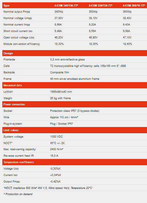 72 PV high-performance modules. Guaranteed positive output tolerance of 0... +5Wp by single measuring. Maximum 2400Pa snow load. Maximum stability through aluminium frame Soft Grip. High-quality junction box and connector systems. 15 years manufacturer`s warranty. 25 years linear performance guarantee.