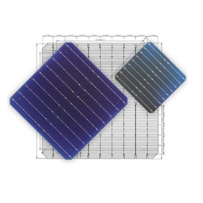 Dimension 166mm*166mm±0. 25mm, Diagonal 223mm±0.5mm, Thickness(Si) 170|jm±20|jm, Front 9 busbars(silver): width 0.1±0.03mm 124 finger grids Blue anti -reflecting coating(silicon nitride), Back width of back electrode(silver) 1. 3±0.25mmtfinger grids(aluminum), dotted laser design.