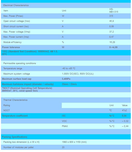 - Hermes-Solar - Model HS-MB1/315 - ...