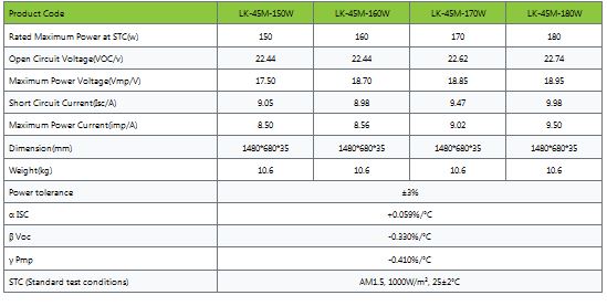 Leeka - Model 150-180W -Monocrystalline Solar pane