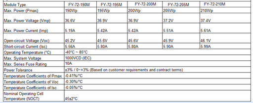 FeiyaModel 190-205W(125) -Monocrystalline Solar Panel