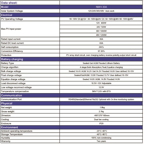 Anxele - Model NMH-30A -MPPT Solar Charge Controller