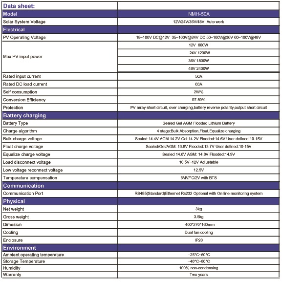 Anxele - Model NMH-50A -MPPT Solar Charge Controller