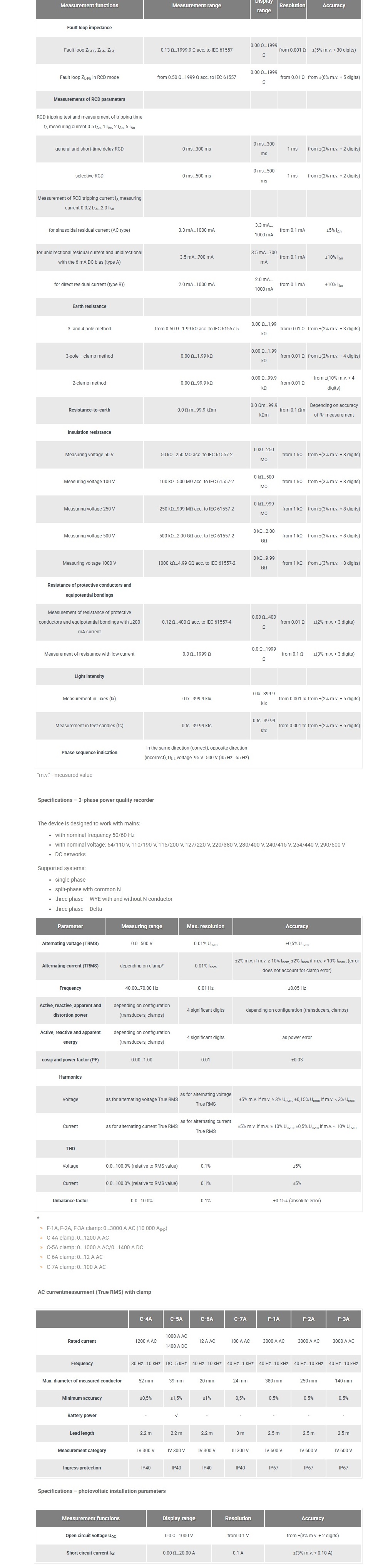 - MPI-540-PV can record 50/60 Hz power quality parameters in accordance to S class of EN 61000-4-30: