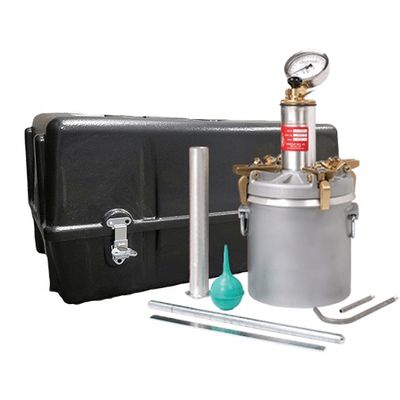The pressure air meter watts style for field and laboratory tests determine air content, determination of specific gravity as well as free moisture test of aggregates. The Watts Style meter has “j-hook” shaped latch tabs. In addition, the device comes complete with the meter, plastic carrying case, bulb syringe, and tamping rod. As well as a strike off bar, calibration vessel, and inside/outside calibration tubes.