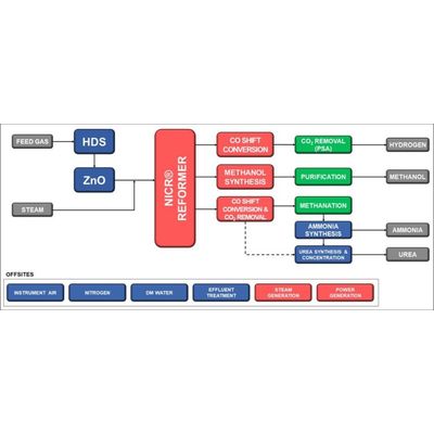 Pyramid E&C offers compact, modular solutions to monetize flared or stranded natural gas into Syngas and thereafter into the blue versions of Hydrogen, Methanol or Ammonia by latest generation Catalytic conversion and Pressure Swing Adsorption (PSA) processes. Syn Gas is reformed using proprietary NICR® technology, which uses electricity to power the endothermic reaction hence eliminating open flame, associated hazards, and pollution at the installation. All the plants are containerized to prevent rust and damages during shipment.
