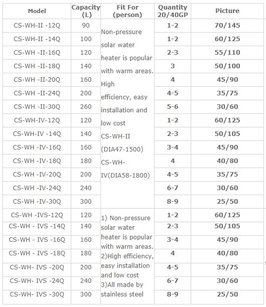 Non-pressure solar water heater relies on the natural circulation of water between the collector and the tank or heat exchanger. As water in the vacuum tubes is heated it rises naturally INTO the tank, while cooler water in the tank flows down to the bottom of the vacuum tubes, causing circulation throughout the system.