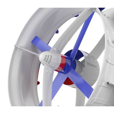 This accelerated air is then used by two contra-rotating rotors, which additionally accelerate each other, making the turbine even more efficient.