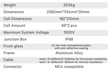 N-Type182"210mmCell : Adopting the 182`210mm N-Type TOPCon solar cells wilh the highest efficiency. Higher Output Power : Module adopts 132 pes of 182`2lOmm half cells, the maximum power can reach 630W. Harsh Environmental Adaptability : Strict salt spray and ammonia corrosion test by TUV Nocd. Low Light Features : Higher performance under low light environment. Load Capacity : Mechanical load tests including wind load 2*00 Pa and snow load 5400 Pa done by TUV Nord. PID Protection : Ensure the attenuation probability caused by PID phenomenon is minimized.