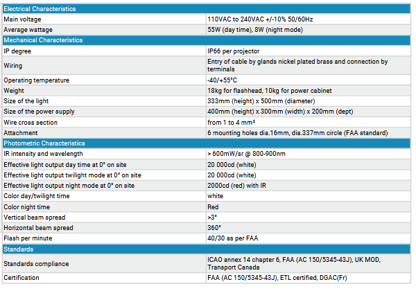 The obstaflash system dual color L-865/L-864 or white only L-865 provides a day and night marking solution for all kind of obstacle higher than 61 meters as per FAA. For obstacle below 213 meters the use of white or dual color flashing lights L-865/L-864 during day and twilight time eliminate the need to paint the obstacle with red and white stripes.