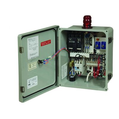 Features: UL Type 4X fiberglass enclosure padlockable. Pump circuit breakers. Separate control and alarm fuse. IEC contactor. Rated for 12 amps. 115V or 230V, 1 phase. Flashing visual alarm. Audible alarm and silence optional. Hand-Off-Auto (H-O-A) switch. Alarm test. Pump run light. All components UL listed. Clearly labeled terminal blocks for quick & easy field connections. All components UL listed.