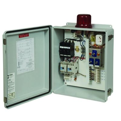 Features: UL Type 4X fiberglass enclosure. IEC rated (1 phase) contactor and (3 phase) starters. Ambient – compensated overloads on 3 phase starters. Handles up to 2 Hp pump @ 12 FLA. Flashing Visual Alarm. Separate alarm and control circuits. Color coded wire. Full subdoor on 460V models. Pump circuit breakers. Clearly labeled terminal blocks for quick & easy field connections. All components UL listed.