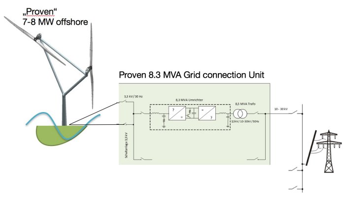 Normally, each turbine has its separate electrical system, and a turbine is therefore a power plant by itself. This is understandable for smaller units and form the starting point in modern wind turbines as it all started in the 1980s. But based on experience in larger wind farms, SkyWind has developed electrical systems based on external units.