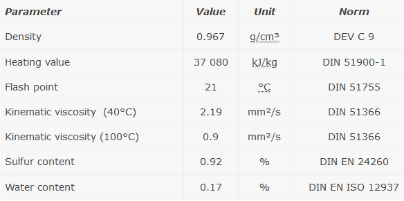 Pyrolysis oil out of the recycling of rubber waste is characterized by its high heating value of 37 MJ/kg. Another very important property is the water content of less than 0.2%, which allows the storage of the oil for a long time.