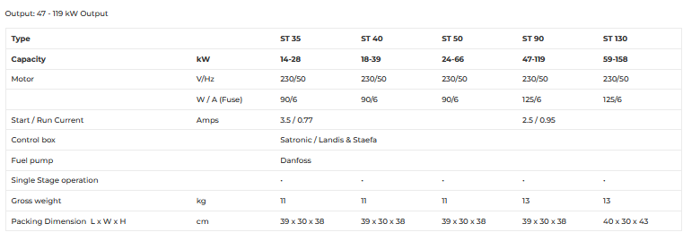 This burner is suitable for use with both light oil and kerosene with single stage on/off operation. Available for both conventional and ducted air options and is typically suitable for domestic and commercial hot water boilers, air heaters. Sterling oil and gas burners are commonly used by many boiler manufacturers including Worcester Bosch, Trianco and Grant.