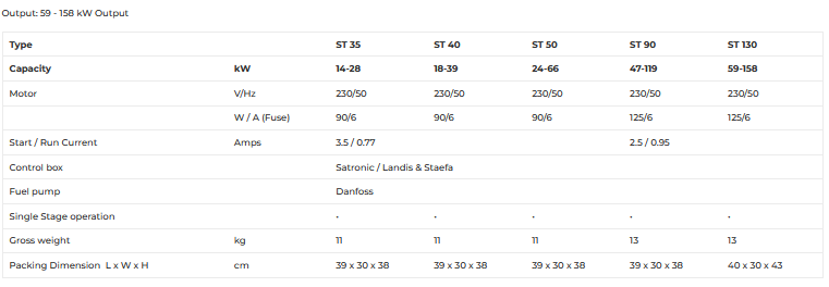 This burner is suitable for use with both light oil and kerosene with single stage on/off operation. Available for both conventional and ducted air options and is typically suitable for domestic and commercial hot water boilers, air heaters. Sterling oil and gas burners are commonly used by many boiler manufacturers including Worcester Bosch, Trianco and Grant.