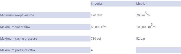 - Low pressure ratio per stage, but can be mounted in series.