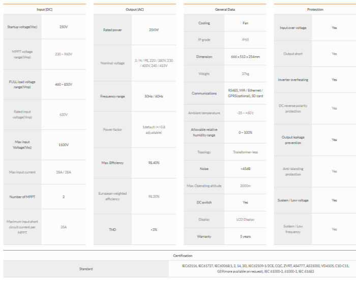 Dass - Model DSP-3325i-ODS -On-Grid Commercial Solar Inverter