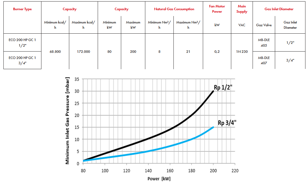 Ecostar - Model ECO 200 HP GC 1 -One Stage Gas Burner