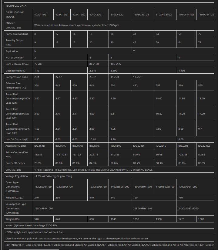 Above based on voltage 220/380V. The weights are approximate and without fuel. ln line with our policy of continuous product development we reserve the right to change specification without notice.