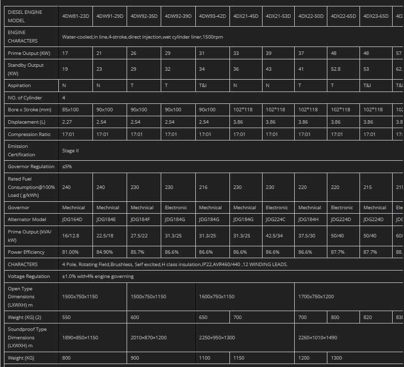 Godlike - Model FAW Series -Open Type Diesel Generator Sets