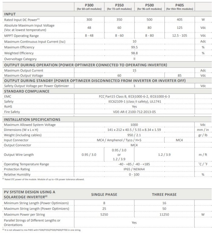 - SolarEdge - Model P300 / P350 / P405 / ...
